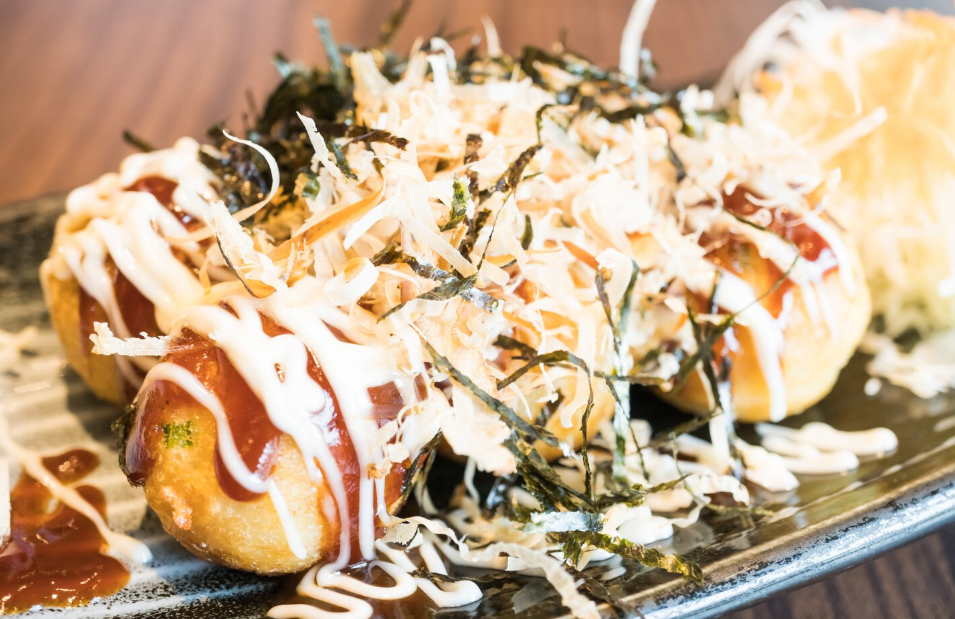 Dimentica il sushi e preparati a scoprire il vero gusto del Giappone da passeggio. I Takoyaki sono delle piccole e irresistibili palline di pastella riempite con polpo tritato, cipollotto, zenzero e altri ingredienti. Vengono cotti in una speciale piastra a forma di semisfera e serviti con salsa, maionese e scaglie di pesce essiccato (katsuobushi) che si muovono con il calore, creando un effetto magico.