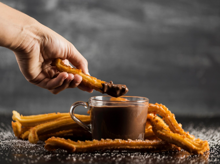 Se preferisci qualcosa di dolce, i Churros sono la scelta perfetta. Sono bastoncini di pasta fritta, croccanti all’esterno e morbidi all’interno, che vengono cosparsi di zucchero e cannella. La tradizione vuole che vengano intinti in una densa cioccolata calda, ma sono deliziosi anche da soli.